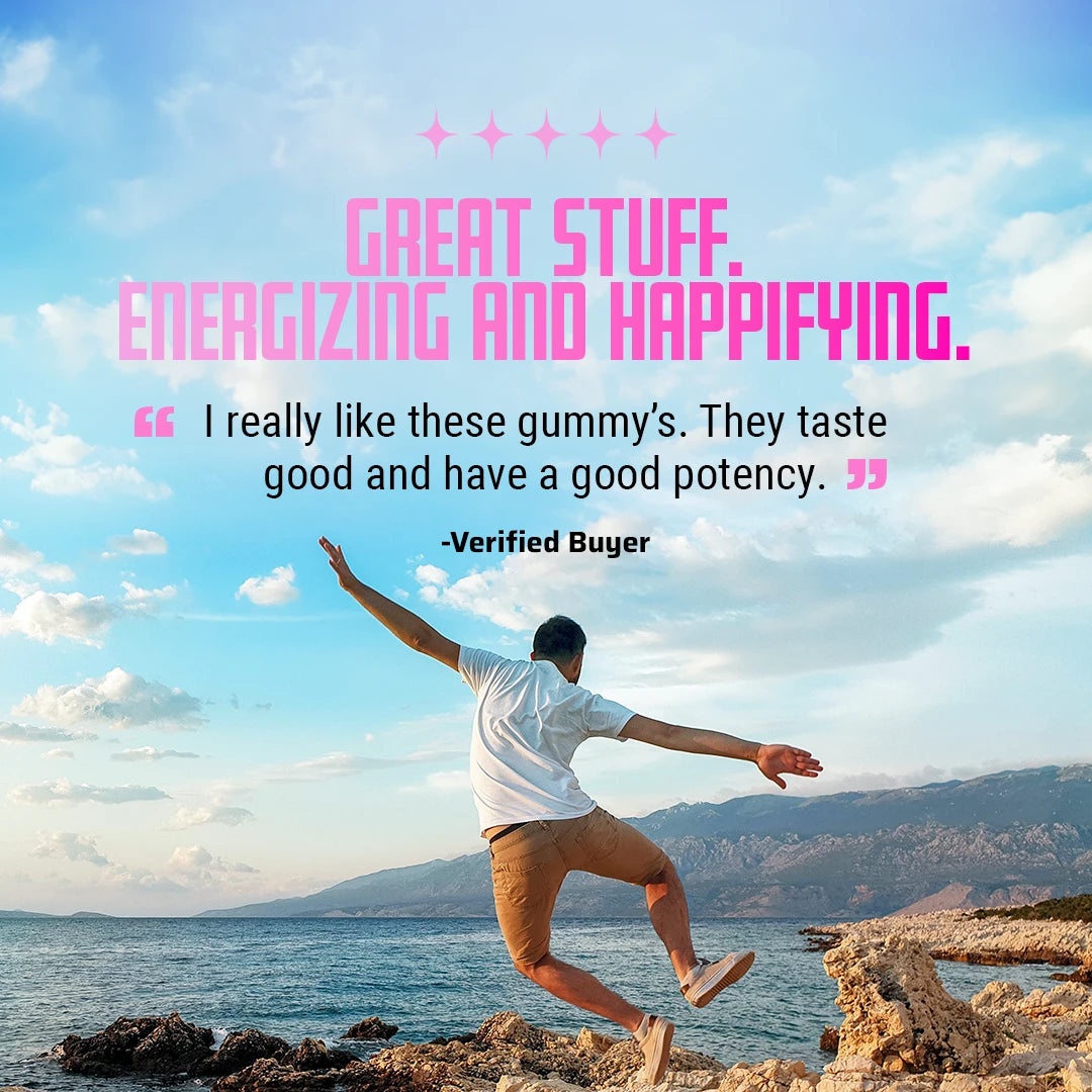 Our Amanita Muscaria Mushroom gummies are entirely different from what you would usually think of as “magic mushrooms” aka psilocybin. They offer a much different, milder experience without the trip.