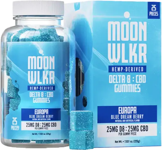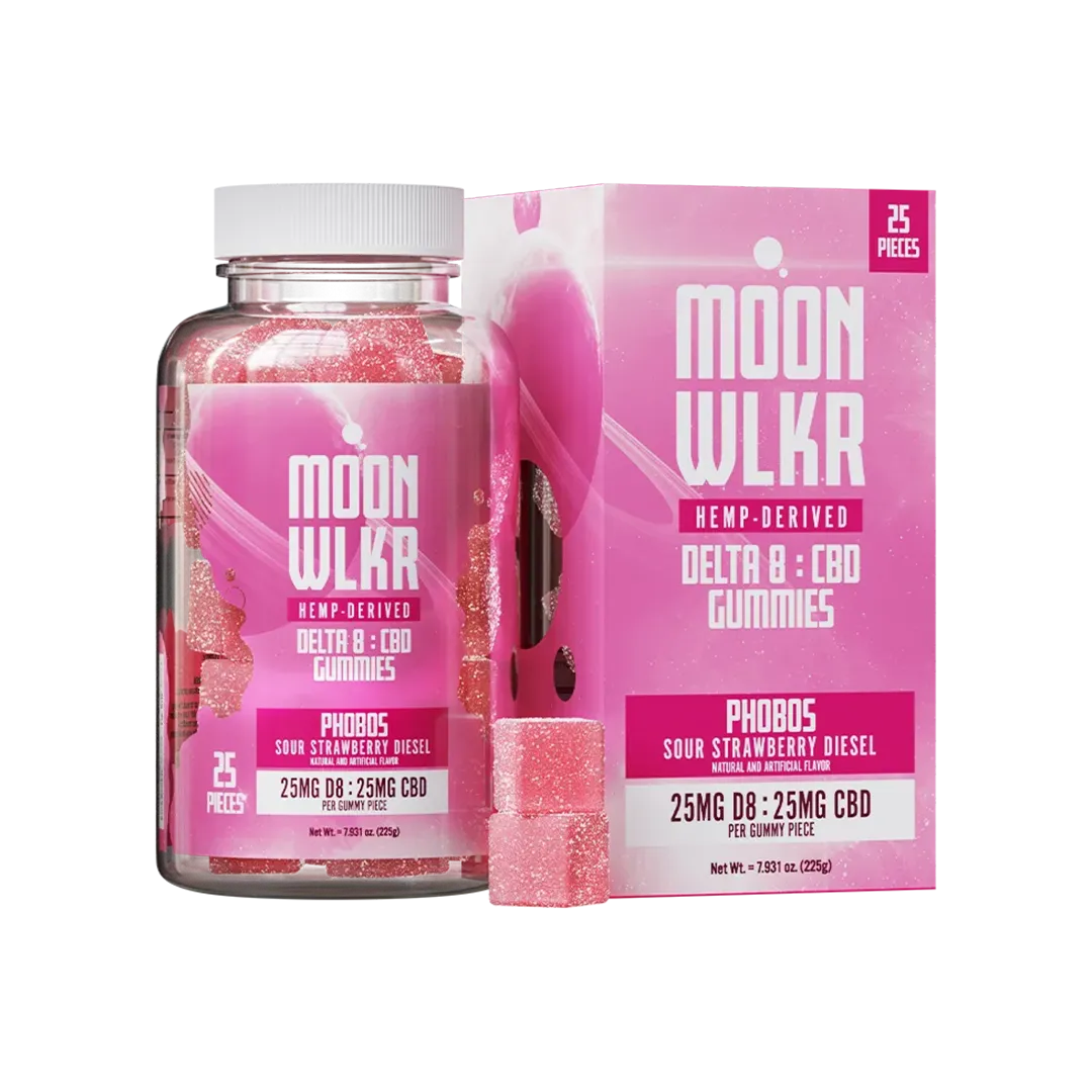 - 25mg Delta 8 + 25mg CBD per gummy