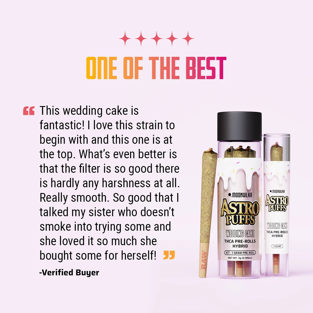Strain: Wedding Cake, a hybrid known for its balanced and pleasant effects.